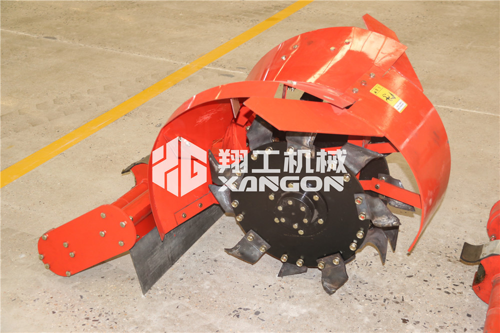 基于正盤開溝機,通過拆下開溝機刀盤,換裝攪攏,實現回填作業。適用于正盤開溝機開溝后的回填作業。