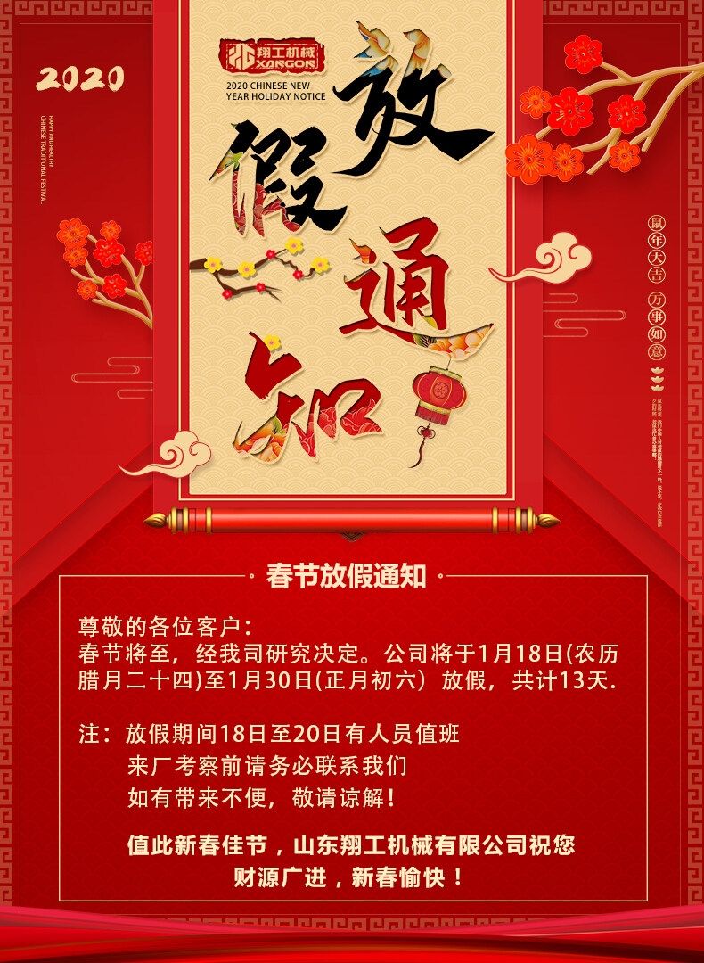 關于翔工機械新年放假通知