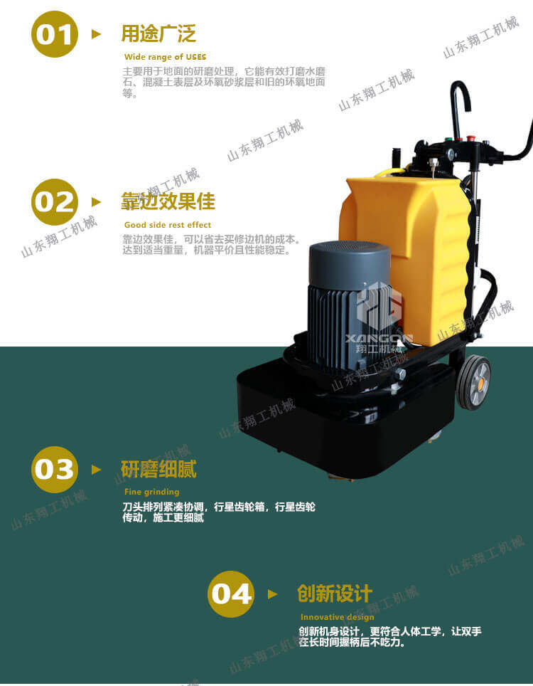 地坪研磨機主要用于地面的研磨處理,它能很好的打磨水磨石、混凝土表層及環氧砂漿層和舊的環氧地面等。具有輕便、靈活,工作效率高等特點。是做地坪工程處理的理想設備。