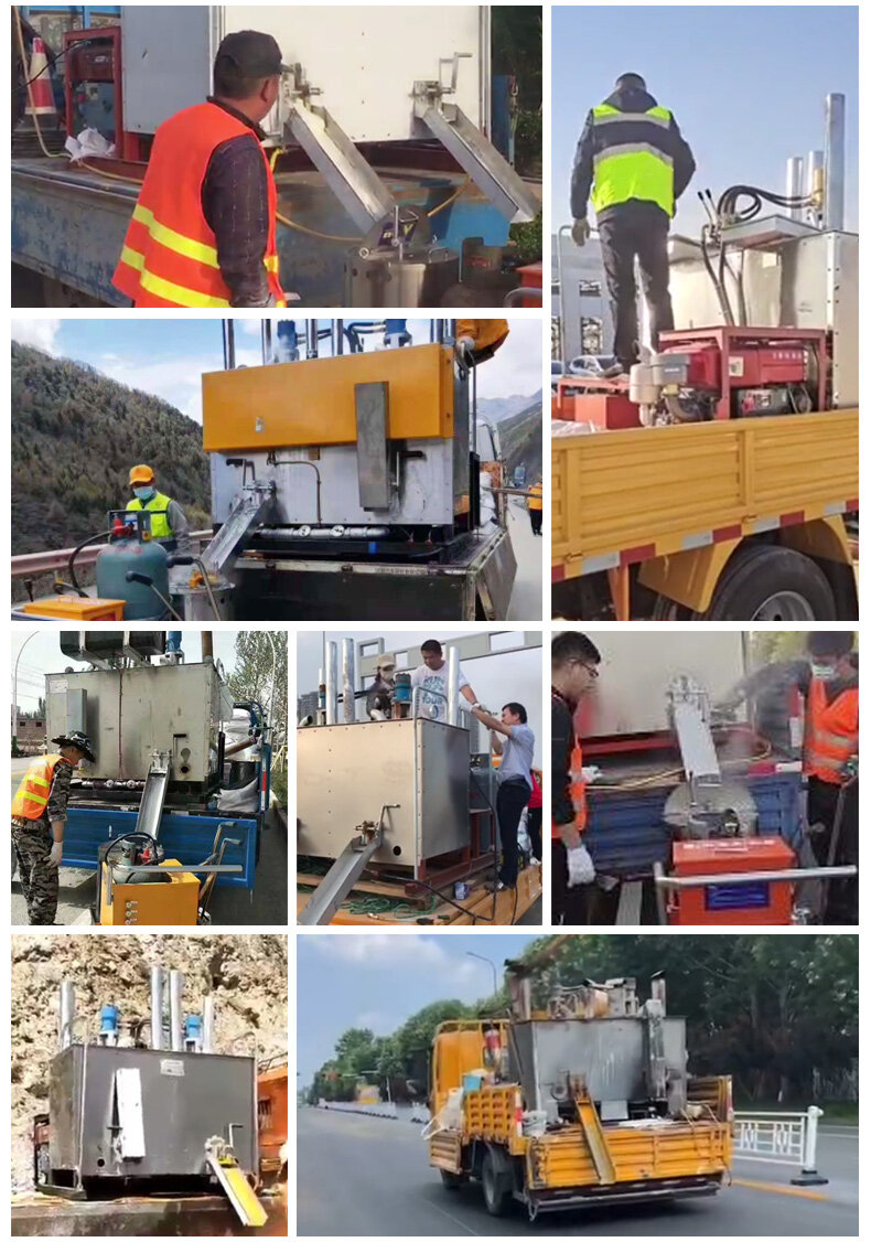 XG1200液壓雙缸熱熔釜是一款熱熔標線施工的主要設備之一。標線施工時,先利用熱熔釜將粉末狀涂料加熱,攪拌,直到熱熔變成液態后,再將涂料放入劃線機內進行劃線施工。