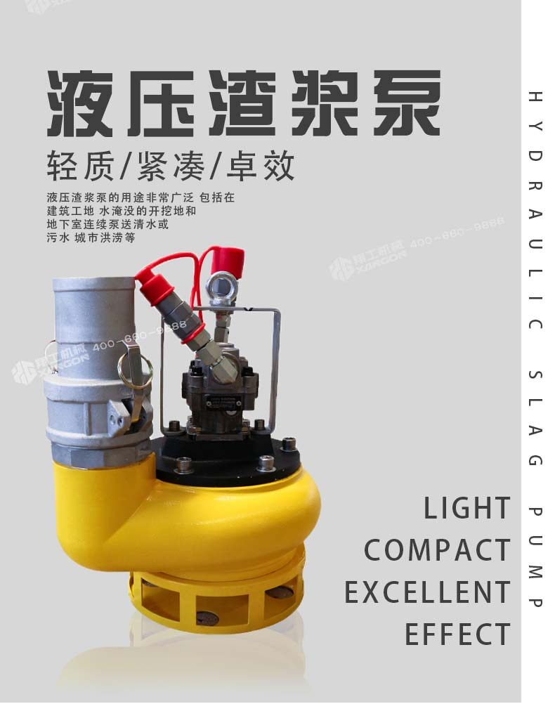 翔工液壓渣漿泵輕質、緊湊和卓效,液壓渣漿泵的用途非常廣泛,包括在建筑工地、水淹沒的開挖地和地下室連續泵送清水或污水、城市洪澇等。
