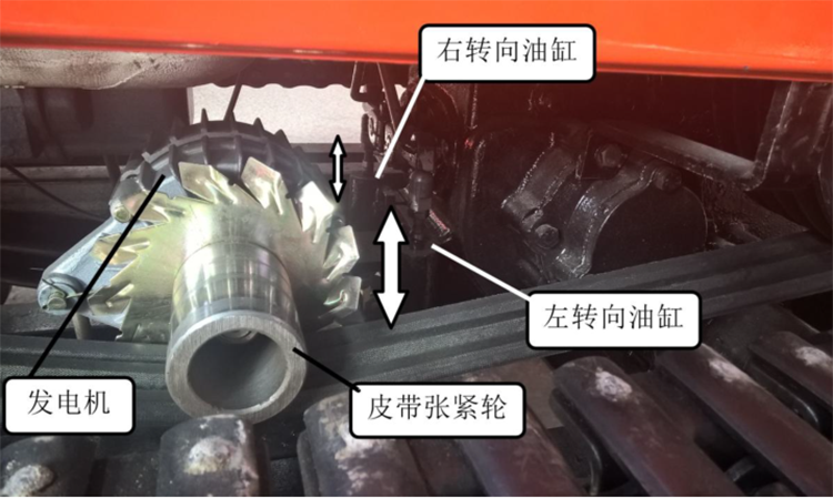 注意:左、右轉向油缸頂桿單獨推出,控制左、右轉向;同時推出為臨時停車;直線行走時油缸收回;調整發電機拉桿漲緊皮帶。