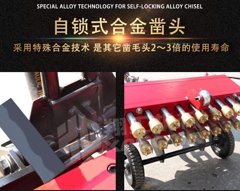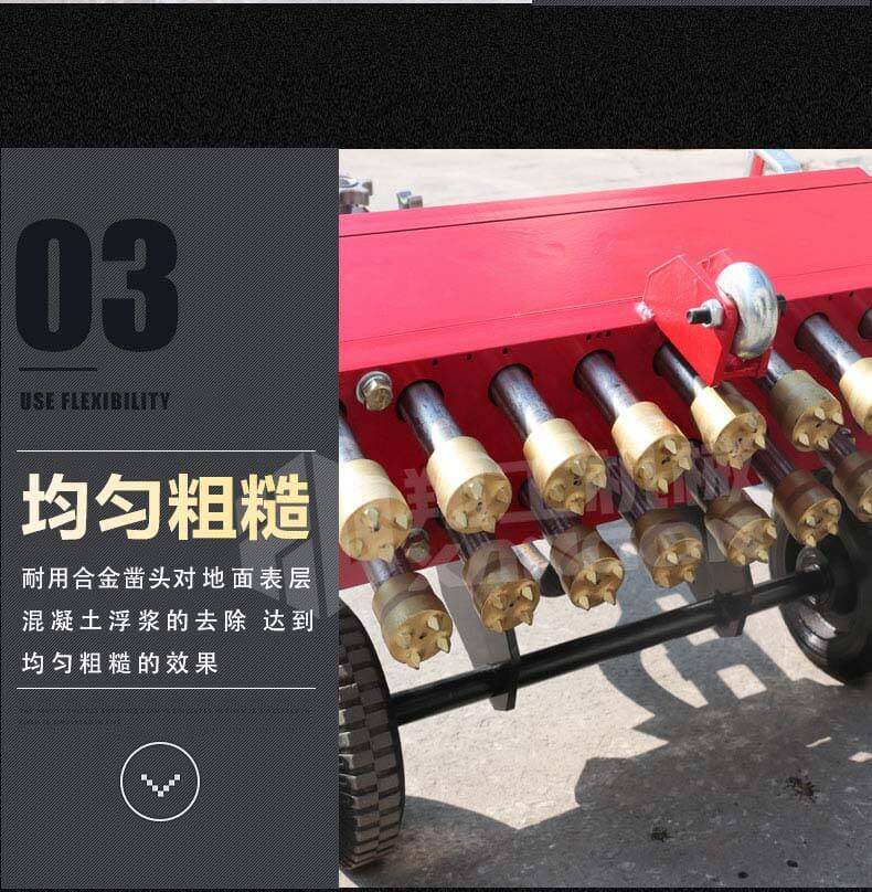 XG-P17A手推式地面鑿毛機(jī),主要為高速公路、高速鐵路的橋面、機(jī)場、橋梁、停車場等各種混凝土地面新建鋪裝時(shí)對地面表層混凝土浮漿的去除,達(dá)到均勻粗糙而設(shè)計(jì)的。對各種陳舊地面做翻新前的地坪處理;去除破損地面凸起部分;環(huán)氧樹脂地面鑿毛;地面做防滑面;對需二次鋪裝新舊面層打毛等具效率高的鑿毛工具。