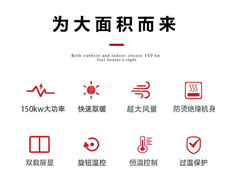 不管是室外還是室內(nèi),只要是需要提升溫度,選擇150KW燃油款暖風(fēng)機(jī)就沒(méi)錯(cuò)了,工業(yè)燃油柴油暖風(fēng)機(jī)您是通過(guò)柴油燃燒散發(fā)大量的熱,通過(guò)電機(jī)工作,風(fēng)扇把熱量給吹出來(lái),持續(xù)升溫,并且 能自動(dòng)保持恒溫狀態(tài)!適合養(yǎng)殖,展會(huì),車(chē)間等大面積取暖場(chǎng)所。