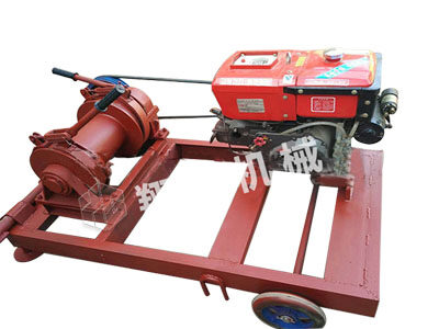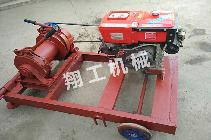 通過調節卷揚機將鏟頭升至適當高度,然后松開離合桿,由此鏟頭便可扎入土中。再次調節卷揚機將扎