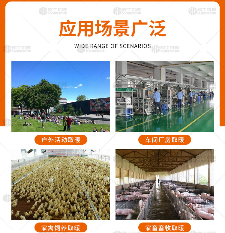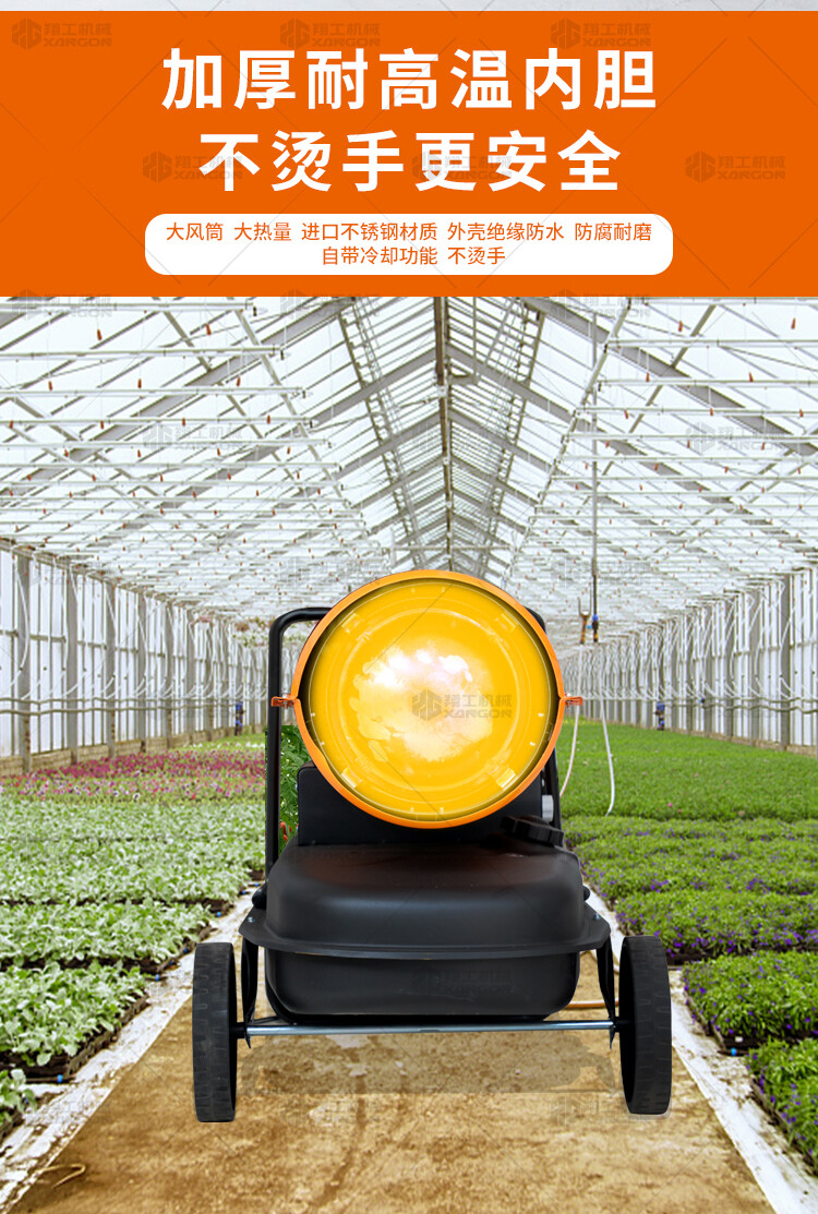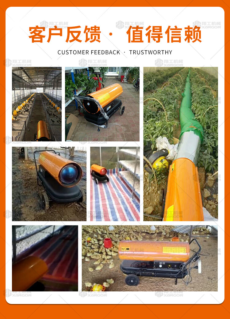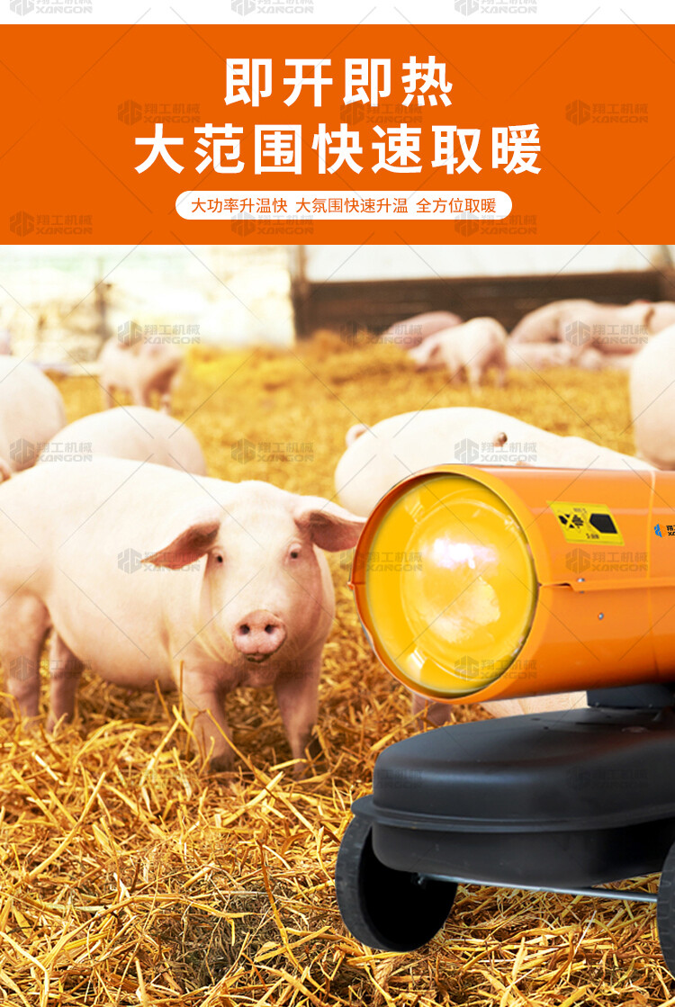 燃油暖風機可對禽畜取暖,育雛取暖,花卉養殖,大棚蔬菜瓜 果,商場,車間,展會進行取暖。