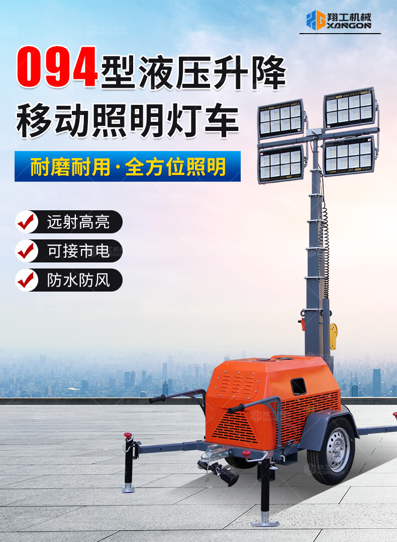 094移動照明燈車采用高亮度LED光源,照明強度高、范圍廣,適用于夜間施工、搶險救援等作業場景。配備液壓升降系統,可自由調節燈架高度,實現360°全方位照明。移動靈活,支持拖掛或自行走模式,適應復雜地形。內置大容量電池組,并可選配發電機供電,續航持久,是高效可靠的移動照明解決方案。