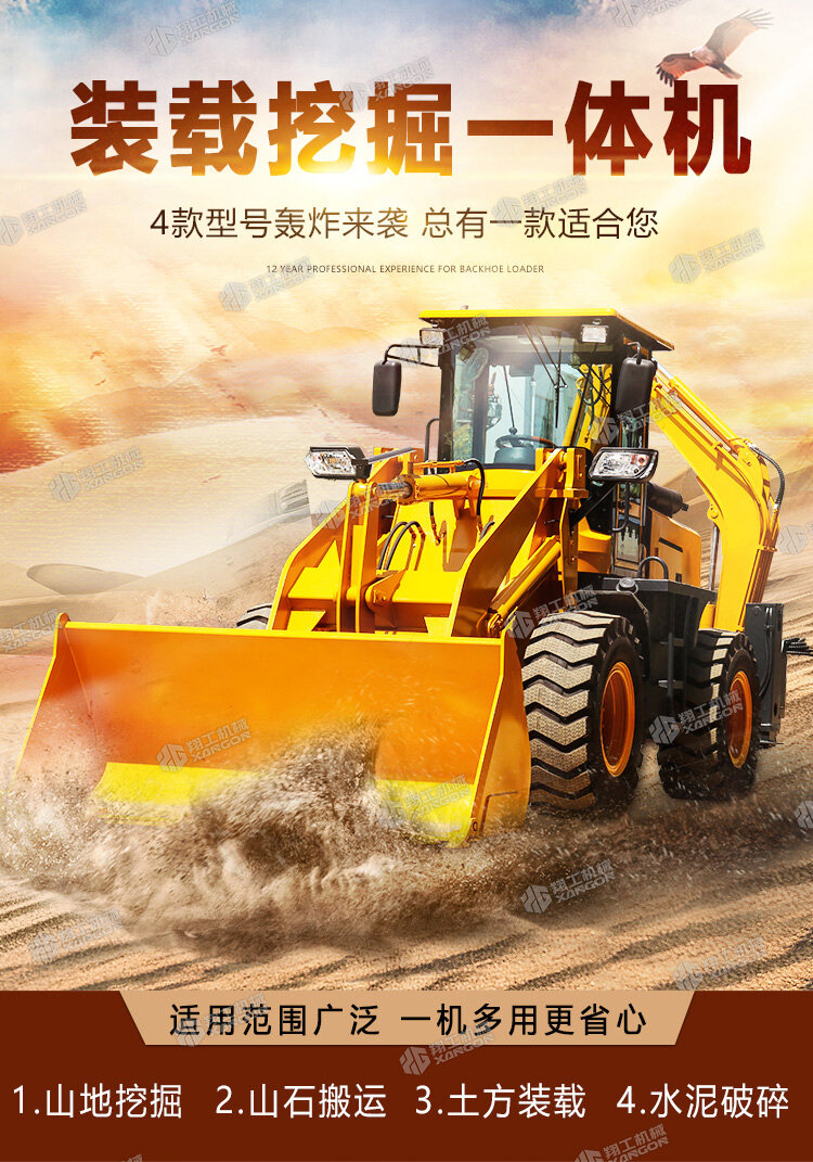 【產品簡介】 挖掘裝載一體機俗稱“兩頭忙”。因為它具有獨特的構造,前端是裝載裝置,后端為挖掘裝置。在工地內,您只需要轉動一下座椅,即可完成從裝載機到挖掘機操作手角色的轉變。“兩頭忙”屬于小型多功能工程機械的一種,一般在大工程完成后的小工程中使用。它可配多種工作裝置及輔具,進行挖掘、鏟裝、路面破碎、平整場地、開挖溝渠、鋪設管道等多種作業。