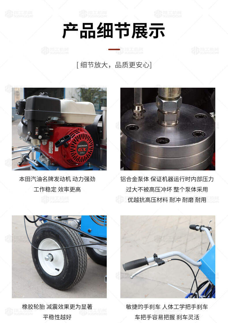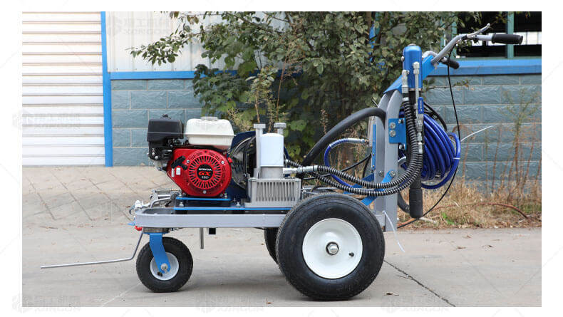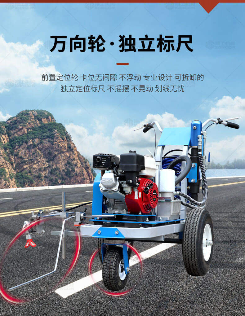 道路劃線機有冷噴式和熱熔式兩大類,冷噴式操作方便,施工快捷,可連續(xù)快速施工,越來越受到用戶青睞。熱熔式要帶上熱熔高溫爐等諸多輔助設施,施工時要間歇地從熱熔高溫爐取料,施工速度很慢,操作便捷性不夠且效率低,但一次成膜較厚。目前,比較常用的是冷噴手推式劃線機,它可運用于一般公路中小工程,運用于廠區(qū)或地下室小工程劃線施工。