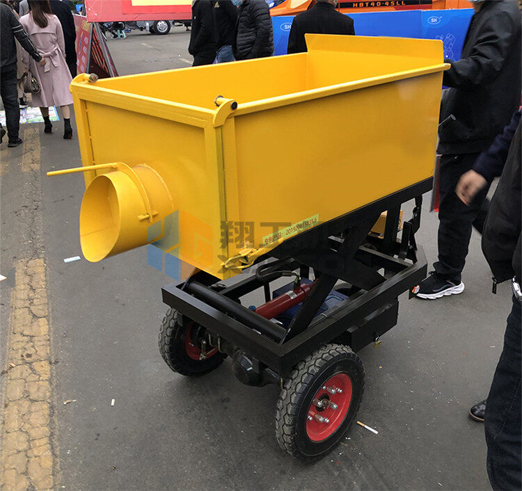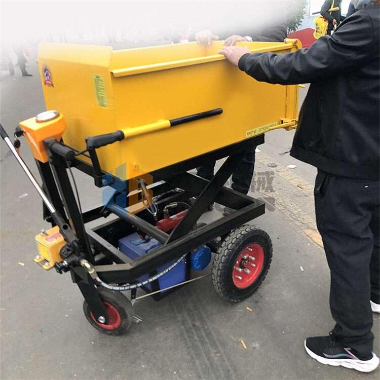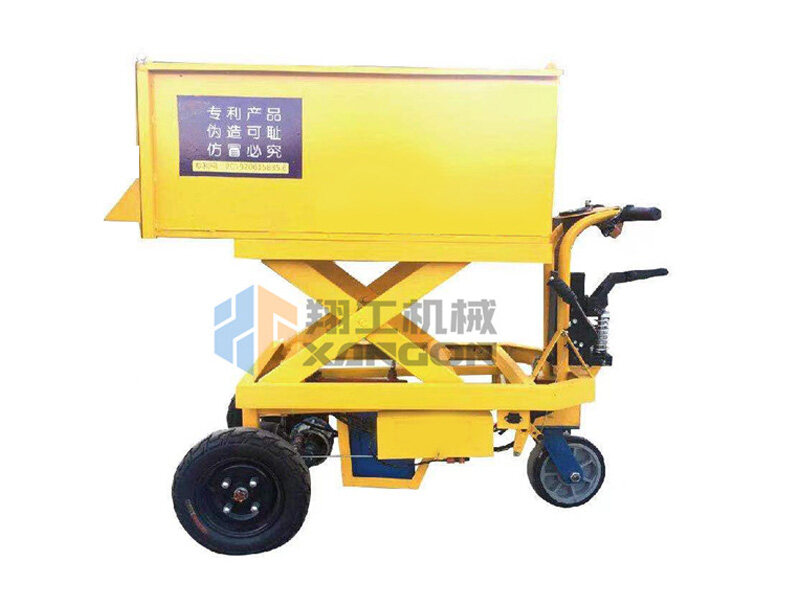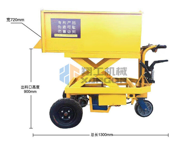 升降式混凝土小推車其主要特點(diǎn)是料斗升降式、尾后出料口和電動行走。